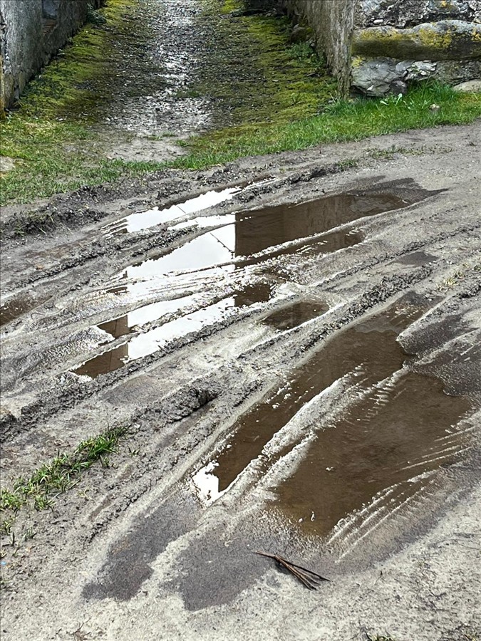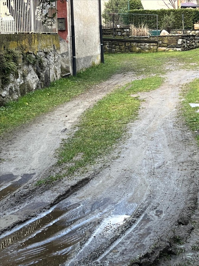 Le recenti piogge ed il transito veicolare hanno recato evidenti danni al sedime stradale del Vicolo Cavallotti a Trausella